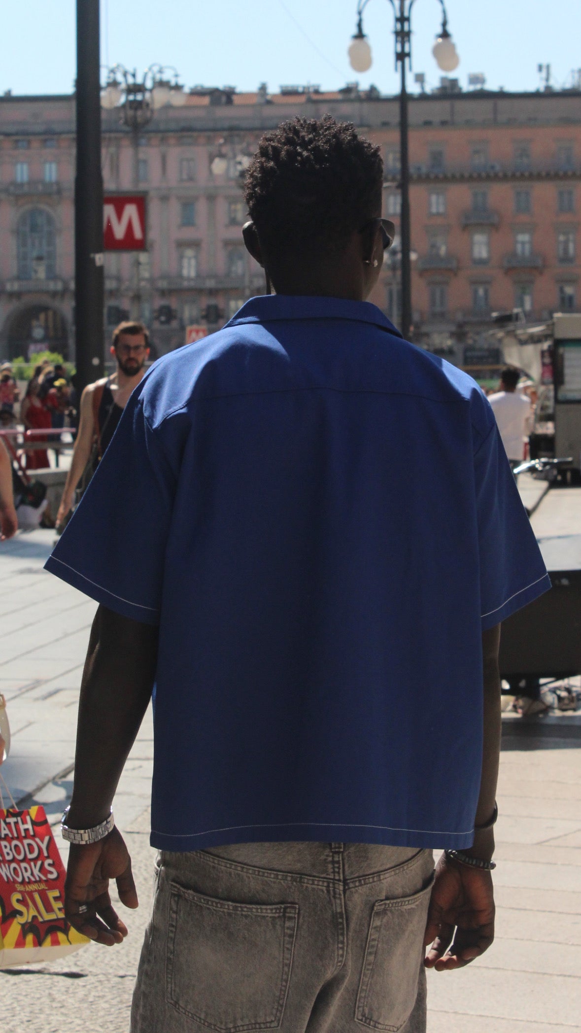 This short sleeved boxy fit shirt is a summer Outerwear essential. Made of 100% twill cotton fabric with a distinctive bowling collar and Streets logo embroidery on the breast.
