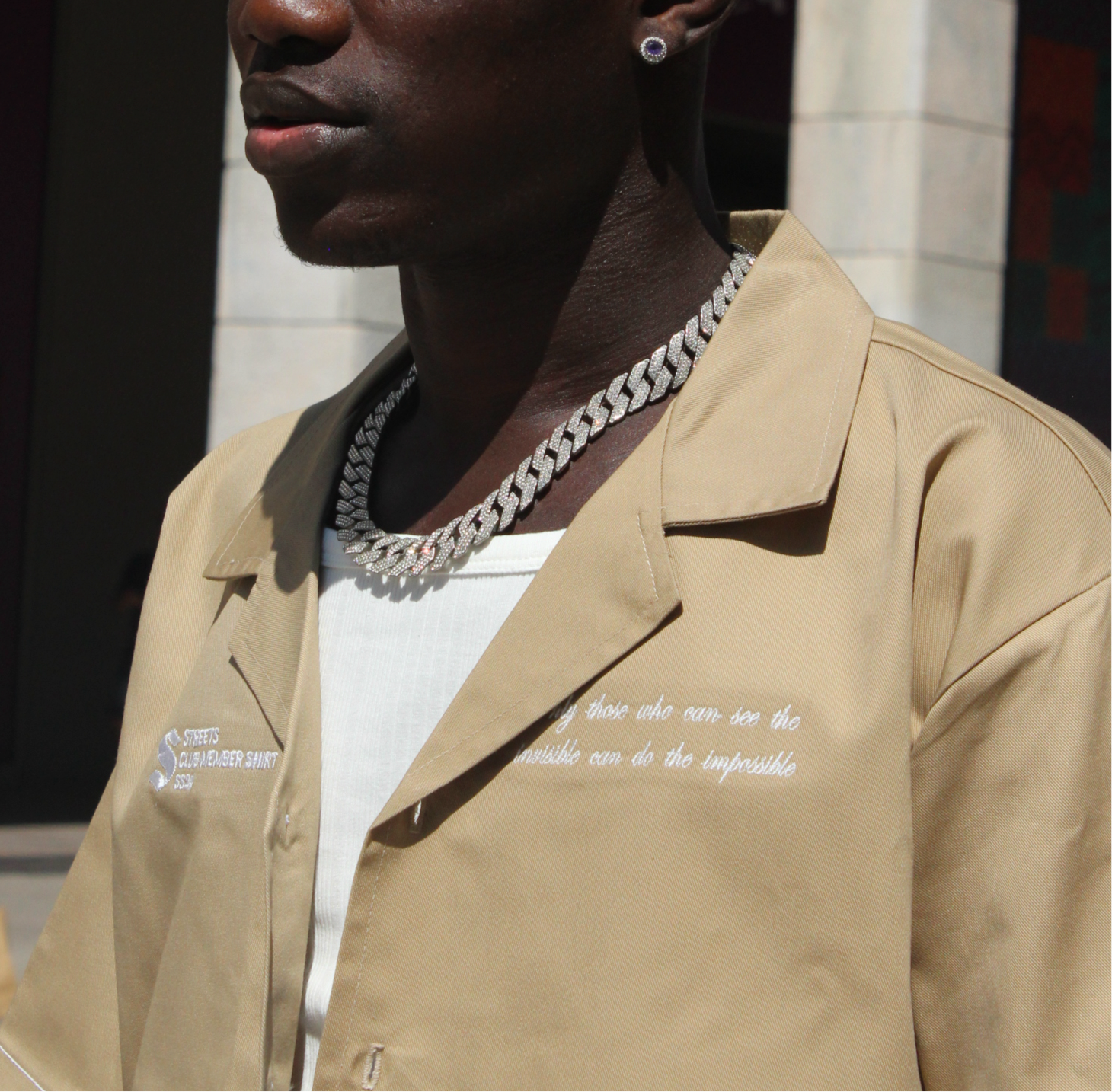 This short sleeved boxy fit shirt is a summer Outerwear essential. Made of 100% twill cotton fabric with a bowling collar and Streets logo embroidery on the breast.